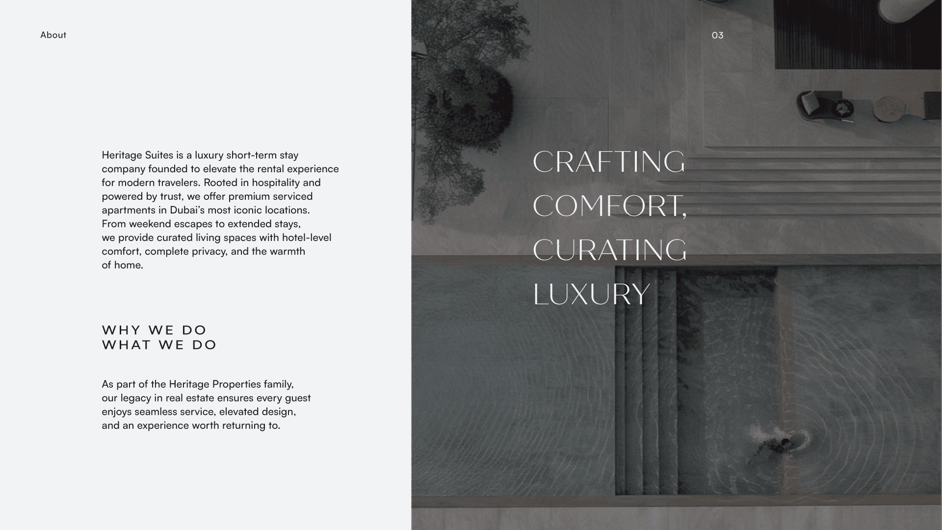 Heritage needed a visual identity that reflected the core values of its founders and the aspirations of its future clients. Drawing on the founders’ Lebanese roots, the essence of renowned Lebanese hospitality became a central influence in the branding. Our goal was to create a brand identity that honors this tradition while expressing modern luxury, translating cultural values of care, generosity and elegance into a contemporary design language.